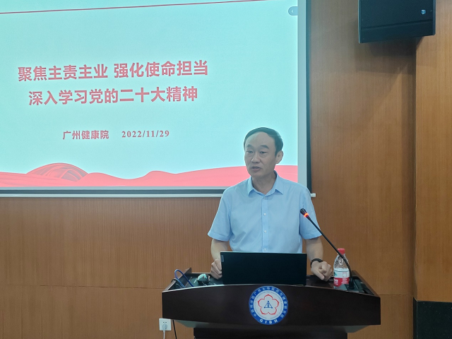 健康院黨委書記、副院長段子淵作題為《聚焦主責主業 強化使命擔當 全面落實黨的二十大會議精神》和《中國科學院重要文件精神學習及落實思考》2個報告,帶領與會人員深入學習黨的二十大精神和中科院人才工作相關文件精神。強調要把學習宣傳和全面貫徹落實黨的二十大精神作為當前和今后一個時期的首要政治任務,要將學習黨的二十大精神與抓好研究院的重點任務結合起來。研究院作為國家戰略科技力量主力軍的重要組成部分,要以國家戰略需求為導向,聚焦主責主業,強化使命擔當,圍繞“十四五”規劃實施、細胞譜系大設施、國重重組三大攻堅任務,狠抓工作落實,加快關鍵人才的引進和培養,確保對二十大精神的學習宣貫取得實效,各項工作更上新臺階,以實際行動為服務國家科技自立自強作出更大貢獻。
