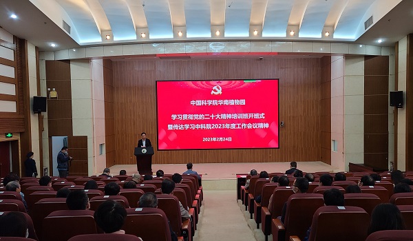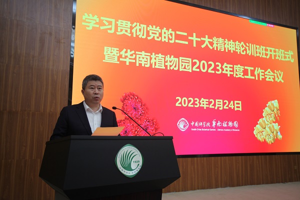 2月24日上午,華南植物園隆重召開學(xué)習(xí)貫徹黨的二十大精神培訓(xùn)班開班式暨2023年度工作會議。園領(lǐng)導(dǎo)班子成員,黨委委員,紀委委員,黨支部書記,學(xué)術(shù)委員會委員,職代會代表,中層領(lǐng)導(dǎo)人員及研究中心、支撐部門負責(zé)人,以及民主黨派、群團組織負責(zé)人,離退休老同志和研究生代表等130余人參加。會議由園副主任閆俊華主持。