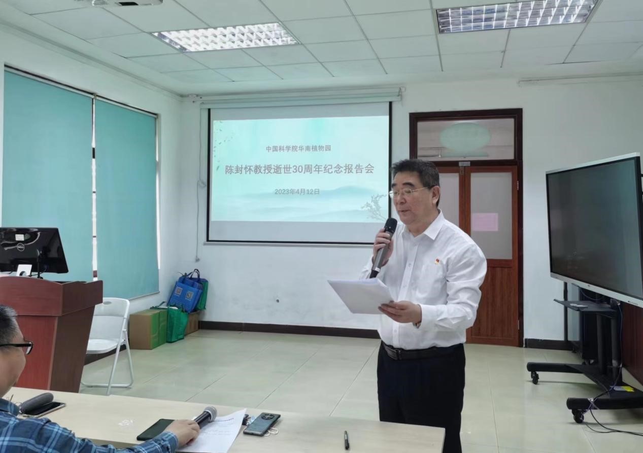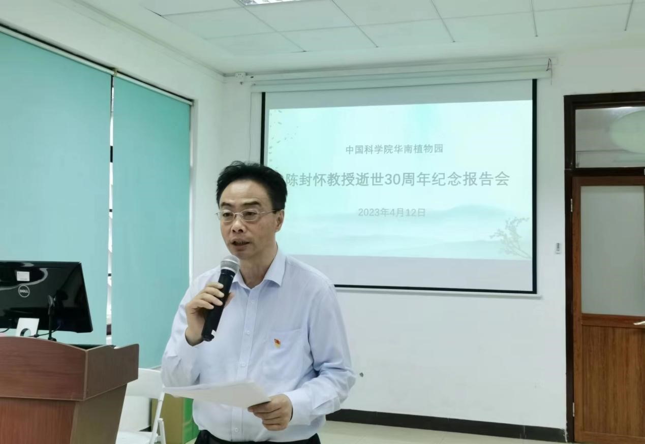 為深入學習宣傳貫徹黨的二十大精神,開展學習貫徹習近平新時代中國特色社會主義思想主題教育,推進“傳承老科學家精神 弘揚新時代科學家精神在行動”專項工作,4月12日,華南植物園舉辦陳封懷教授逝世三十周年紀念報告會暨傳承老科學家精神主題黨日。黨委書記/副主任魏平、副主任葉清、黨委副書記/紀委書記徐海、陳封懷之子陳貽竹、學生代表,以及黨員、職工、研究生90余人參加。徐海主持會議。