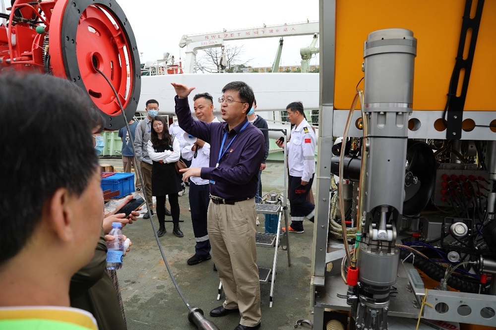 接著,全體黨員到新洲碼頭參觀了“實驗6”科考船。李明帶領大家參觀了“實驗6”科考船的駕駛艙、生化實驗室、設施設備等,重點介紹了全海深多波束測深系統、我國自主研發的纜控水下機器人和操控支撐設備等。黨員們認為,海洋科考研究要比其他科研工作付出更多的艱辛,他們艱苦奮斗、砥礪前行的科學家精神值得我們學習。