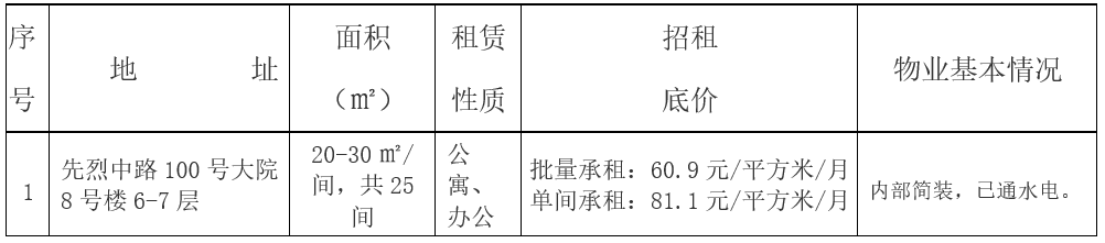 (6)批量承租人必須是具備運營管理辦公用房經驗的物業類管理公司或科研院所,不得個人承租。不得將承租場地分租給中介或其他物業公司進行層層轉租。